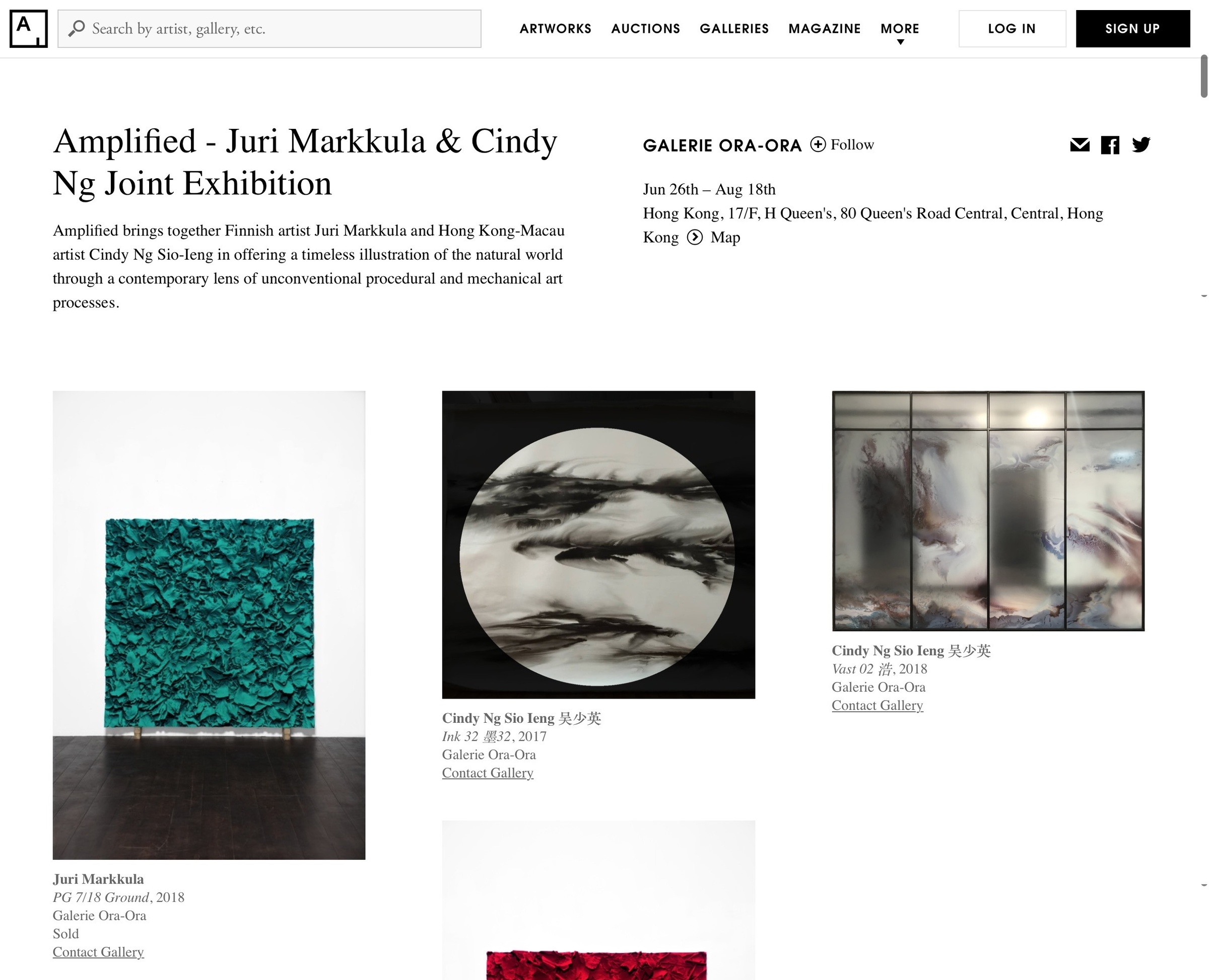 Amplified brings together Finnish artist Juri Markkula and Hong Kong-Macau artist Cindy Ng Sio-Ieng in offering a timeless illustration of the natural world through a contemporary lens of unconventional procedural and mechanical art processes.